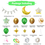 Dekorationset i temat grönt och guld med texten "Eid Mubarak"