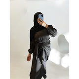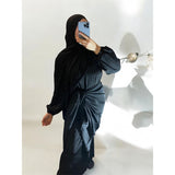 Aleena abaya is a two-part abaya, the abaya itself and an accompanying skirt. The abaya can also be worn without the skirt.